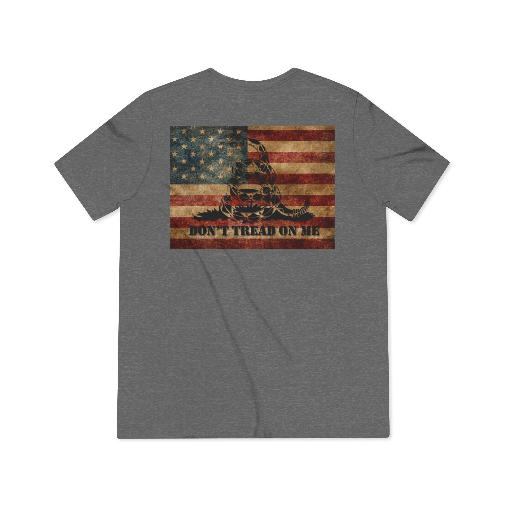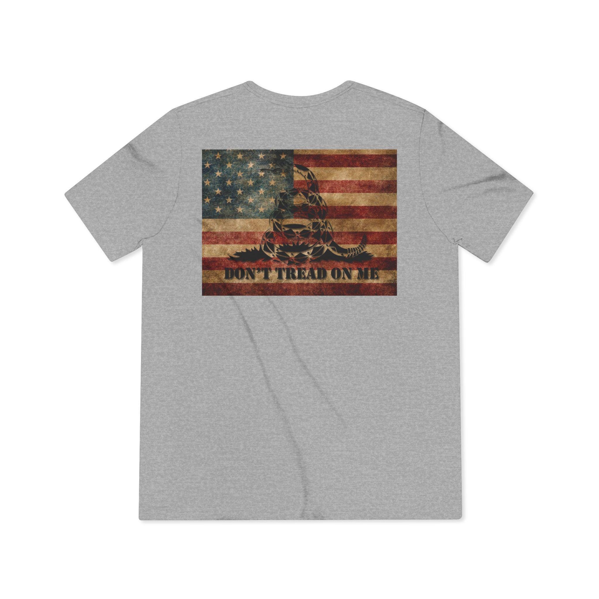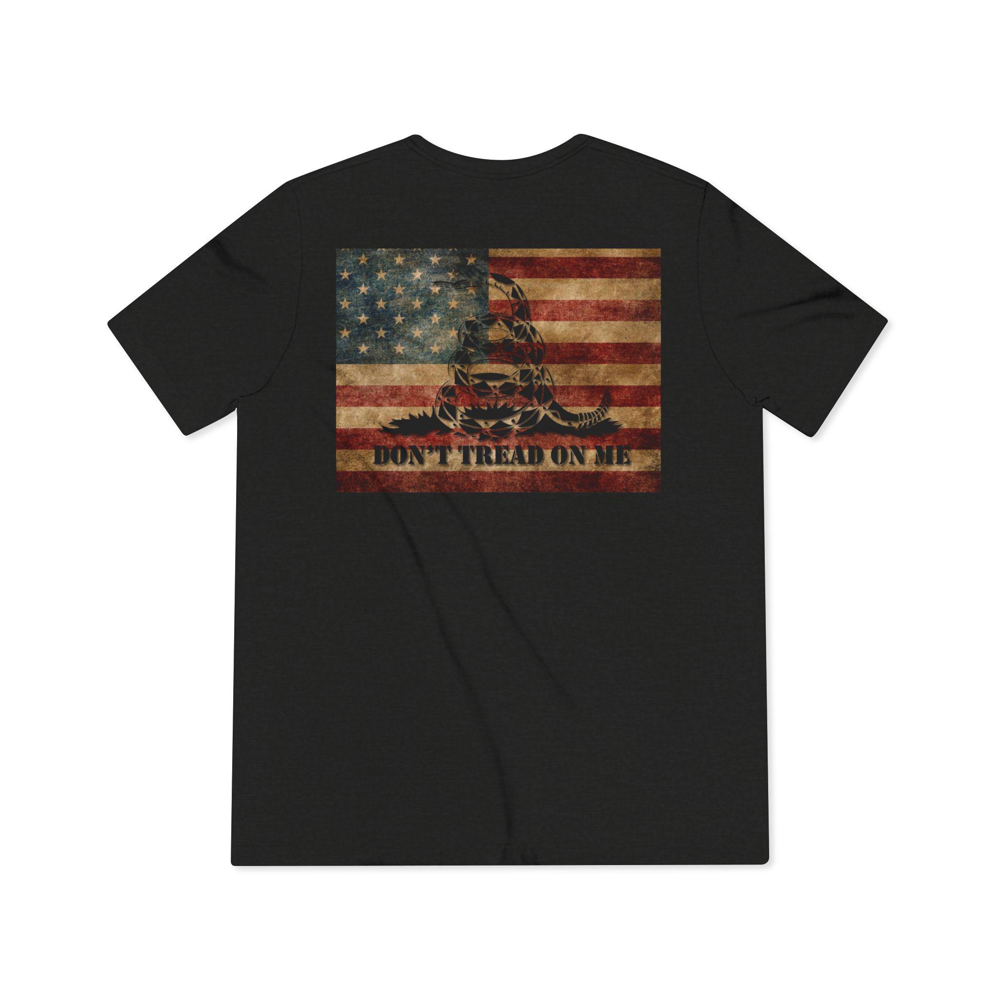 This lightweight tri-blend tee carries a brash, Americana spirit — a faded Gadsden coiled snake blended with a weathered American flag, with a whiskey-stained, lived-in feel. It sits close to the body without clinging, the soft, drapey fabric moving with you whether you’re leaning on a bar rail or walking a familiar backroad. The design reads like a memory: sun-bleached porch boards, a bottle tipped back, a rebel hiss of Gadsden defiance. Worn by folks who value grit and history, it layers beneath a jacket for cool nights or stands alone when the day warms. The result is casual, unmistakable, and quietly stubborn — a tee that looks like it’s already been part of your story.